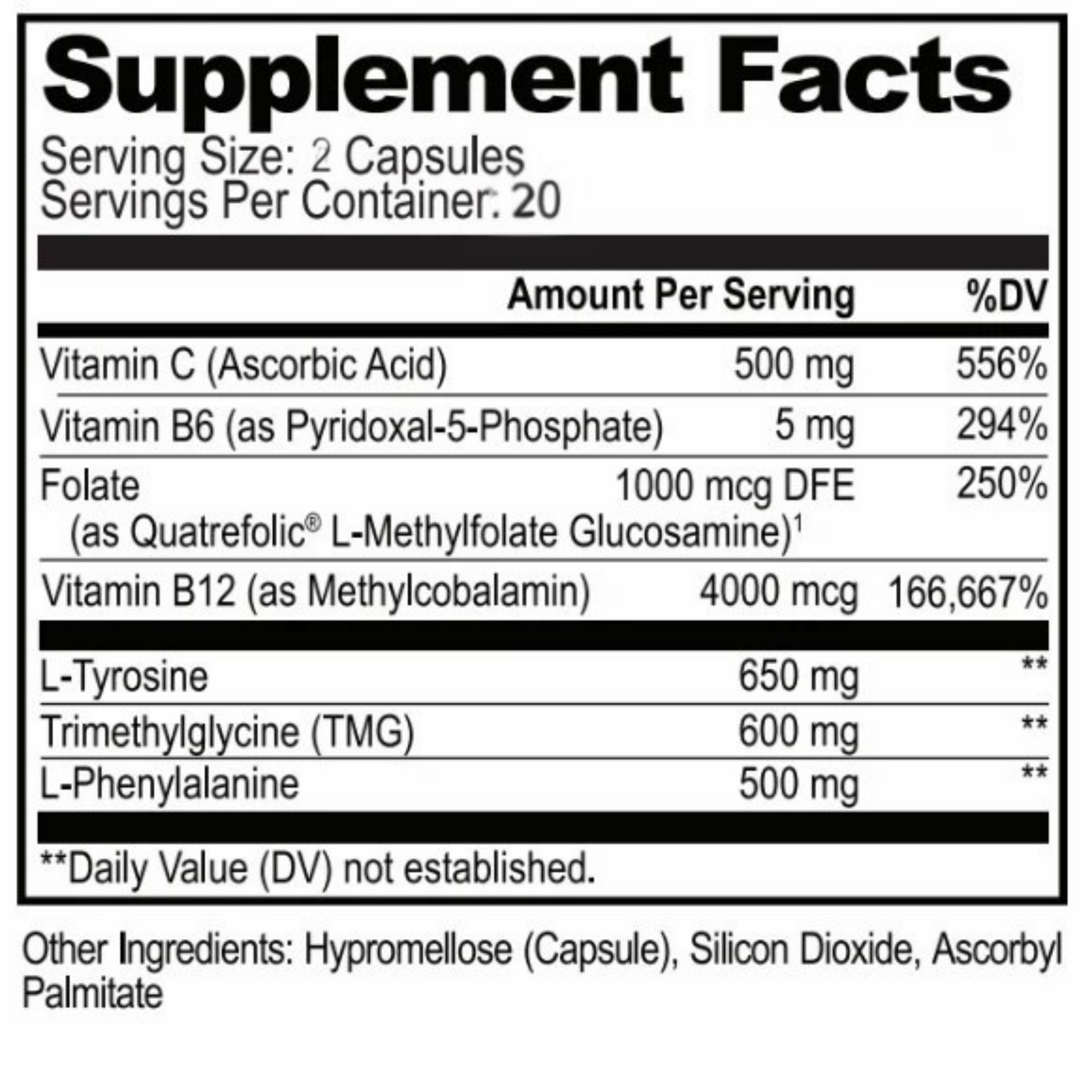 Boosts mental clarity and mood by helping convert L-Tyrosine into dopamine.